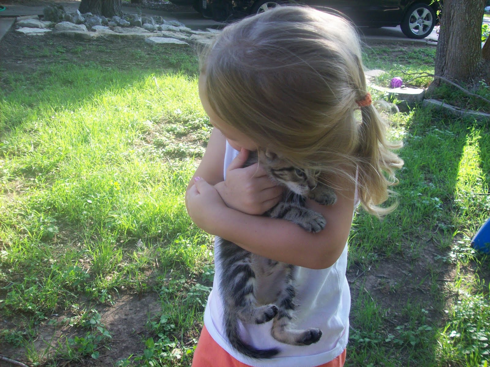 So it was no secret to me that my hubby was not thrilled about bringing home a stray kitten..I think his exact words were “we need another pet like we need a hole in the head”. However, I like to think one of the reasons he loves me so much is the fact that I care…not only for our real babies…passionately, so much I think I drive him crazy sometimes…but also for our “furry” babies too. So when I drove off to work and heard a noise after pulling out of the culde and saw Srgt Pepper in the rear view mirror…my heart sank. She likes to hang out up underneath the car, and apparently she was still in there when I drove off. I was so afraid to walk up to her for fear of what I would see. But in true Pepper style (tough as nails) she was looking up at me as to say “WTF lady?” She had something obviously wrong with her back leg or legs….so I rushed her to my hubby who imediately gave me an eye roll. The ol’ I told you so eye roll. So….he takes her to the vet and it was confirmed that HE indeed had a broken leg that actually requires kitty surgery. And yes…I did say HE…so the hubby officially has another male in the house! The vet said we could possibly amputate and save a few bucks (kitty surgery ain’t cheap)….but I would hate to think if someone had the choice to take one of my limbs to save some duckets, or save it…they would choose the latter of the two. All money is is just dirty green paper..right? She…I mean HE…is a Plachta after all…Till death do us part lil’ kitty…your stuck with us, four legs and all!! Surgery is scheduled for 7am manana….and I have been officially cut off in the pet department.