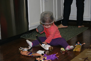 | I’m just hanging with my barbie friends with some tupperware on my head… |