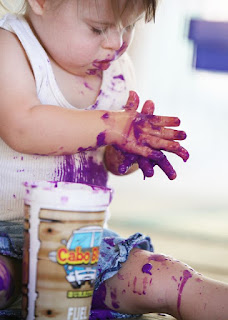 Kinda obvious from these pics that she quite enjoys this activity. Next up on the ‘top three faves’ list…paint OR play with anything goooo-ey. She loves dog bowls, dog food for that matter, play-doe, lotions…anything she can get her grubby lil’ hands on. No sensory issues with this kid…and we pretty much just roll with it. I love it that she comes home from school with “sandy booty”, cornstarch and who knows what else in her hair…but with a big cheesy grin on that sweet face…